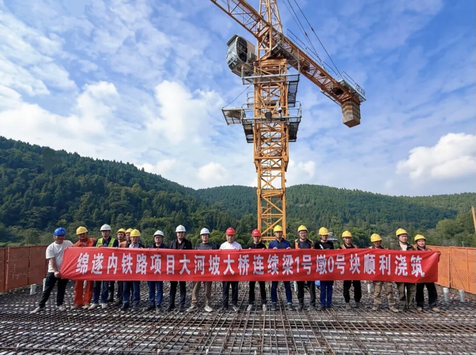 近日,由蜀道铁路投资集团主导投资、中铁北京局集团承建的绵遂资内铁路大河坡大桥连续梁1号墩0号块顺利浇筑,标志着该项目正式进入挂篮悬臂浇筑施工阶段。